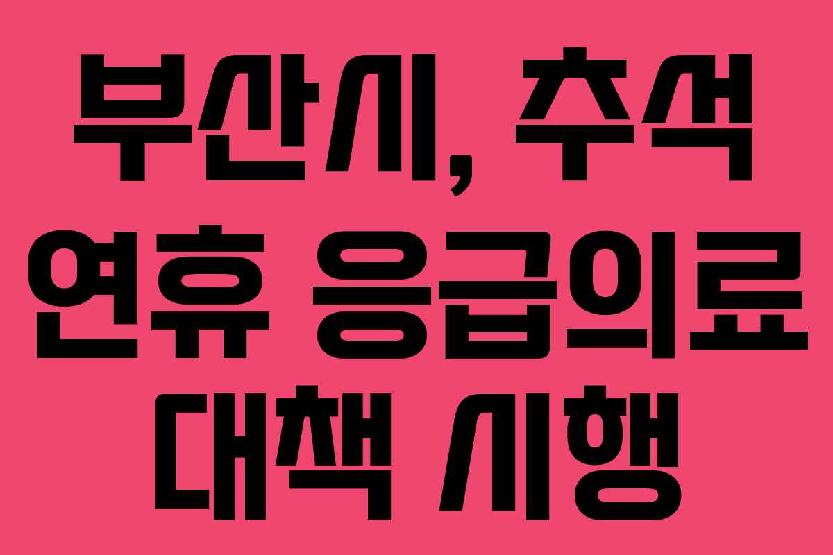 부산시는 10월 3일부터 10월 9일까지 이어지는 추석 연휴 동안 시민들의 의료 불편을 최소화하고, 응급상황에 신속히 대처하기 위해 「추석 연휴 응급진료 대책」을 시행합니다. 이번 대책은 의료취약계층의 지속적 치료를 위해 다양한 방안을 포함하고 있습니다.