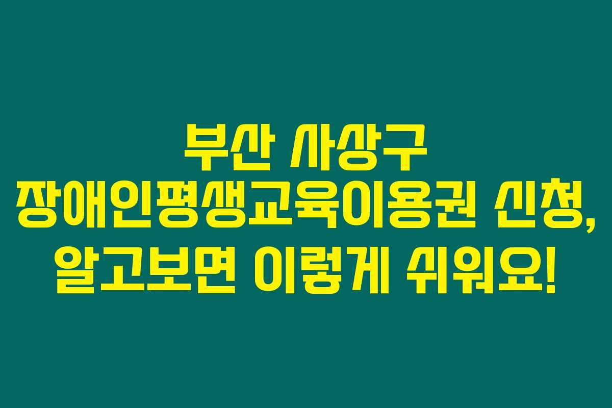 장애인평생교육이용권은 보조금24에서 온라인으로 신청하거나, 사상구청에 서면으로 신청할 수 있습니다.