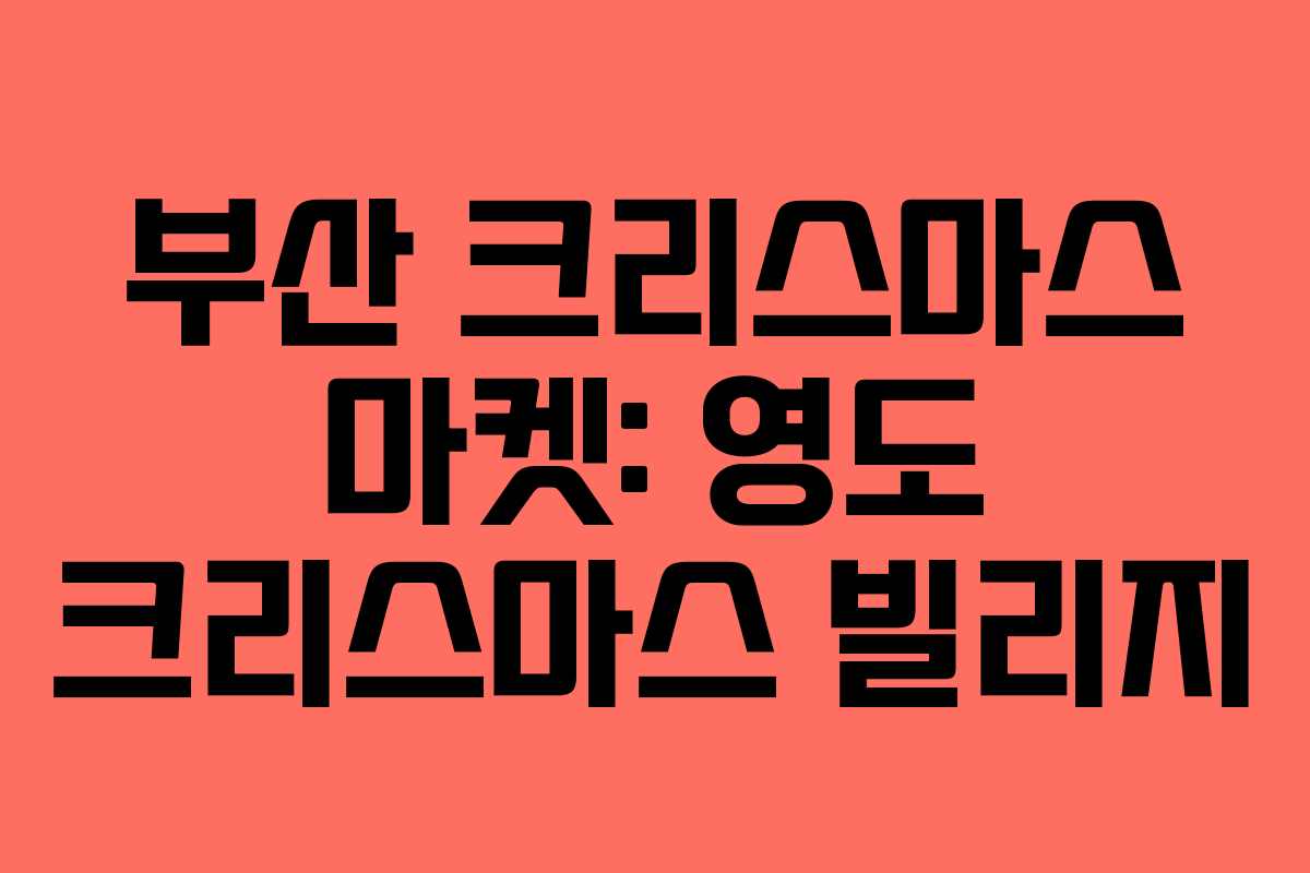 부산 영도에서 열리는 크리스마스 마켓, ‘영도 크리스마스 빌리지’는 연말 분위기를 만끽할 수 있는 특별한 행사입니다. 이곳에서는 다양한 먹거리와 즐길거리가 준비되어 있어 가족, 친구, 연인과 함께 방문하기에 좋은 장소입니다.