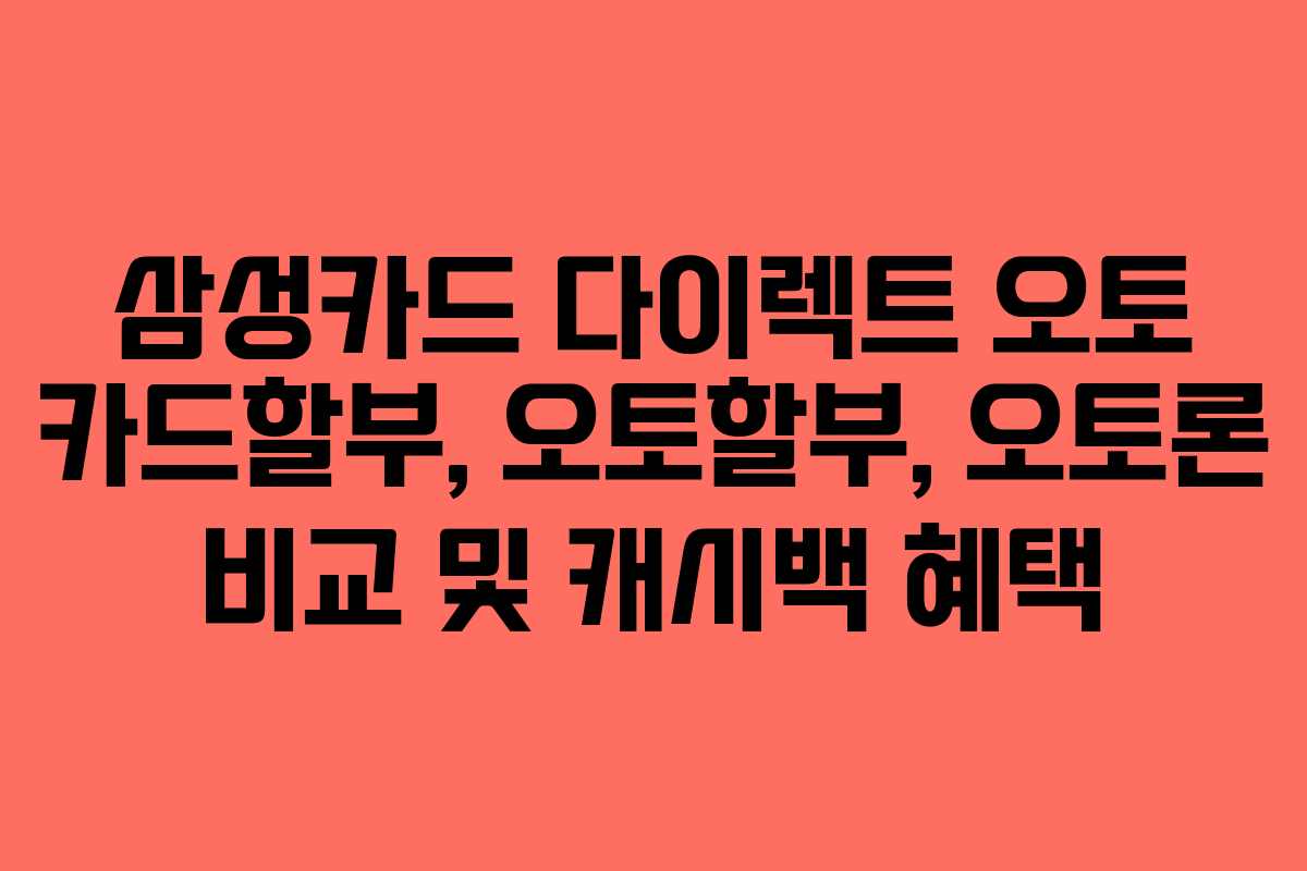 삼성카드 다이렉트 오토는 자동차 구매를 위한 카드할부와 대출 상품으로, 경제적 부담을 줄이며 차량 구매를 지원합니다.