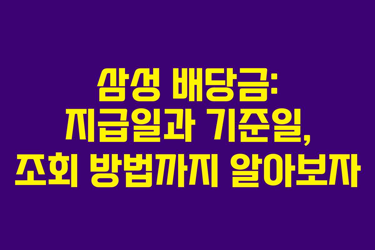 삼성 배당금은 투자자에게 중요한 수익원이 될 수 있습니다. 배당금 지급일, 기준일, 조회 방법 등을 통해 투자의 효율성을 높이고, 놓치는 일이 없도록 관리하는 것이 중요합니다. 주식 투자자는 반드시 공식 자료나 증권사의 배당금 관련 공시를 참고하여 최신 정보를 확인하고, 배당금을 놓치지 않도록 해야 합니다.