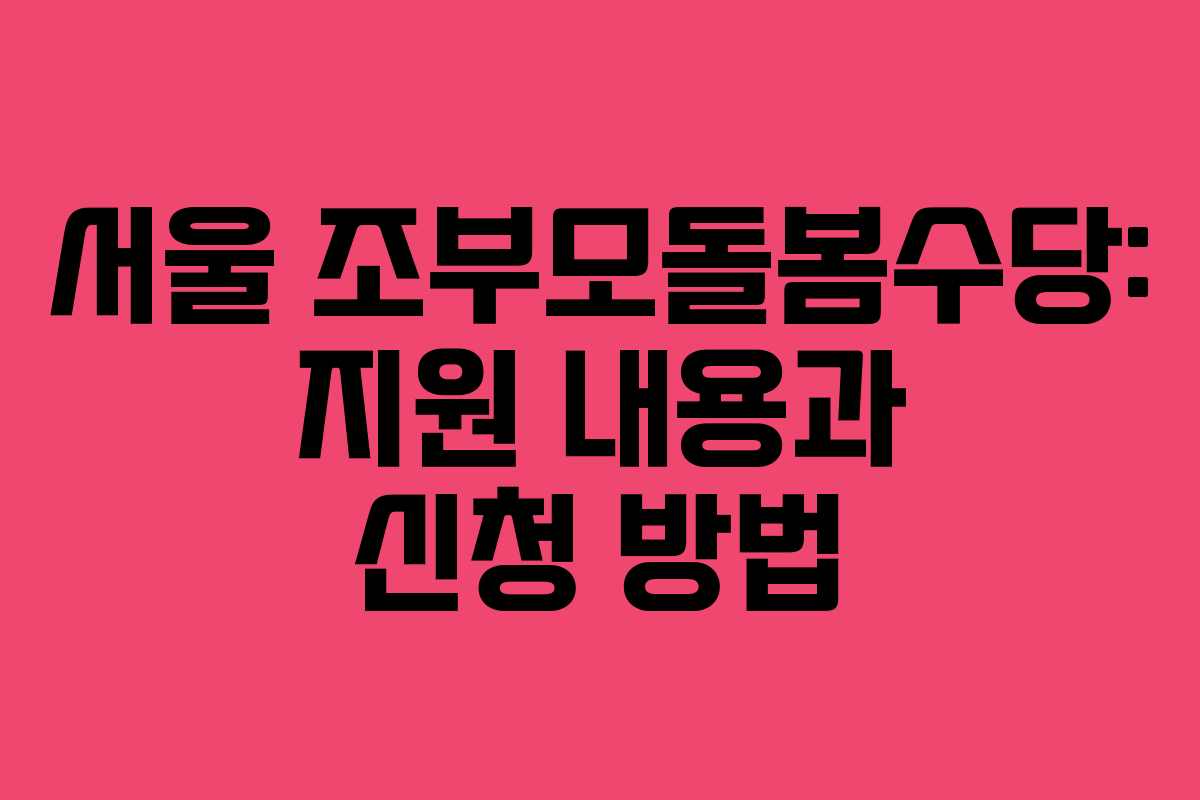 맞벌이 가정이 증가함에 따라 아이가 아플 때나 방학 동안 두 부부가 번갈아 연차를 사용하는 일이 흔해졌습니다. 이런 상황에서 조부모의 도움을 받을 수 있다면 큰 도움이 될 수 있습니다. 서울시에서는 조부모가 손자녀를 돌보는 가정에 대해 돌봄 비용을 지원하는 정책을 시행하고 있습니다. 본 글에서는 서울 조부모돌봄수당의 신청 기준과 지원 내용을 자세히 알아보겠습니다.