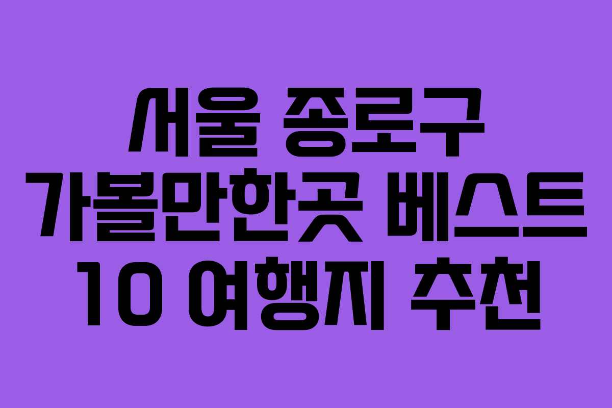 서울 종로구는 역사와 전통이 살아 숨쉬는 장소로, 다양한 관광명소가 밀집해 있습니다. 이번 포스팅에서는 종로구에서 꼭 방문해야 할 여행지를 소개합니다. 아래는 서울 종로구 가볼만한곳 베스트 10 리스트입니다.
