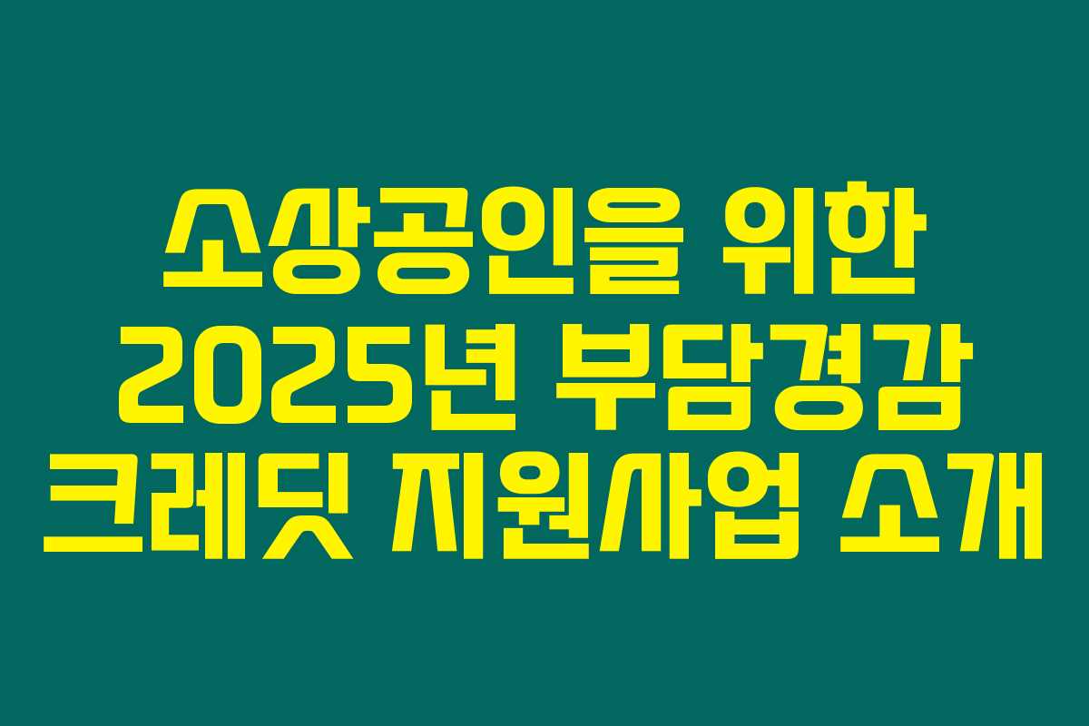 2025년 소상공인 부담경감 크레딧 지원사업에 대한 구체적인 내용이 궁금하신가요? 아래를 읽어보시면, 소상공인들이 필요한 공과금 및 보험료 부담을 줄일 수 있는 지원금의 모든 것을 알 수 있습니다. 최대 50만 원까지 받을 수 있는 기회를 놓치지 마세요!