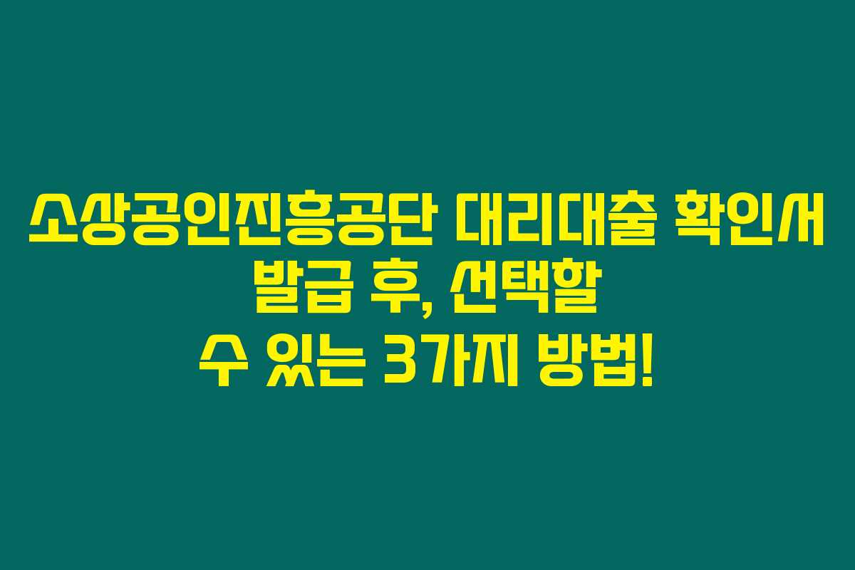 제가 직접 경험해본 결과로는, 소상공인진흥공단에서 대리대출을 받을 경우, 확인서를 발급받아 후속 조치를 진행해야 합니다. 발급된 확인서를 토대로 3가지 방법 중 하나를 선택해 대출 절차를 이어가야 하는데요, 그 방법들을 알아보면 정말 유용할 것 같아요. 아래를 읽어보시면 각 방법의 특징과 장단점을 충분히 이해하실 수 있답니다.