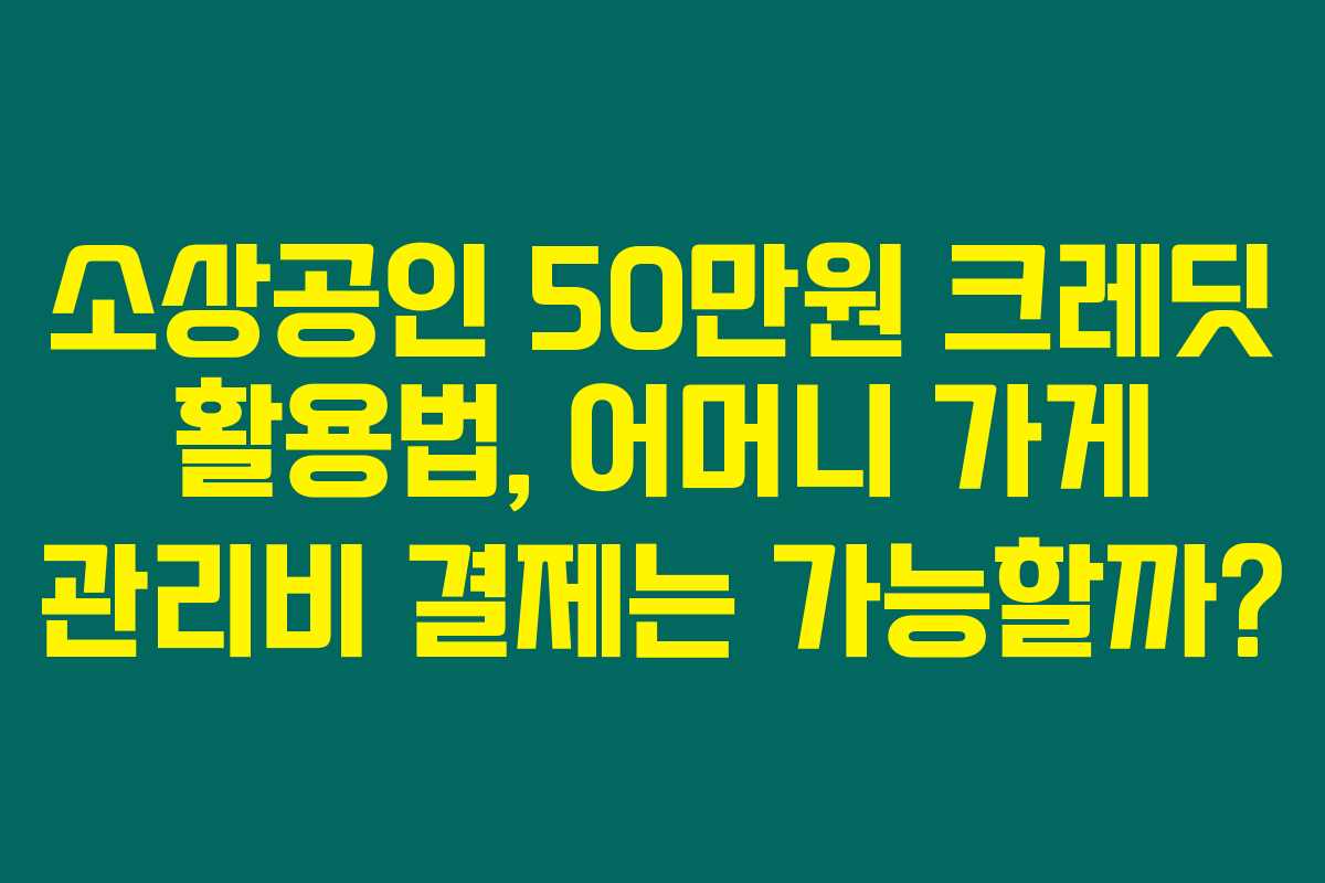 소상공인 분들이 자주 문의하는 50만원 크레딧에 대해 이야기를 나누려고 해요. 이 크레딧이 정말 쓸모 있을까? 특히 어머니 가게의 전기료나 관리비를 납부할 수 있는지 봐야죠. 결론부터 말씀드리면, 대부분의 경우 사용이 어려워요. 아래를 읽어보시면 어떤 점을 명확히 알아야 할지 잘 이해할 수 있어요.