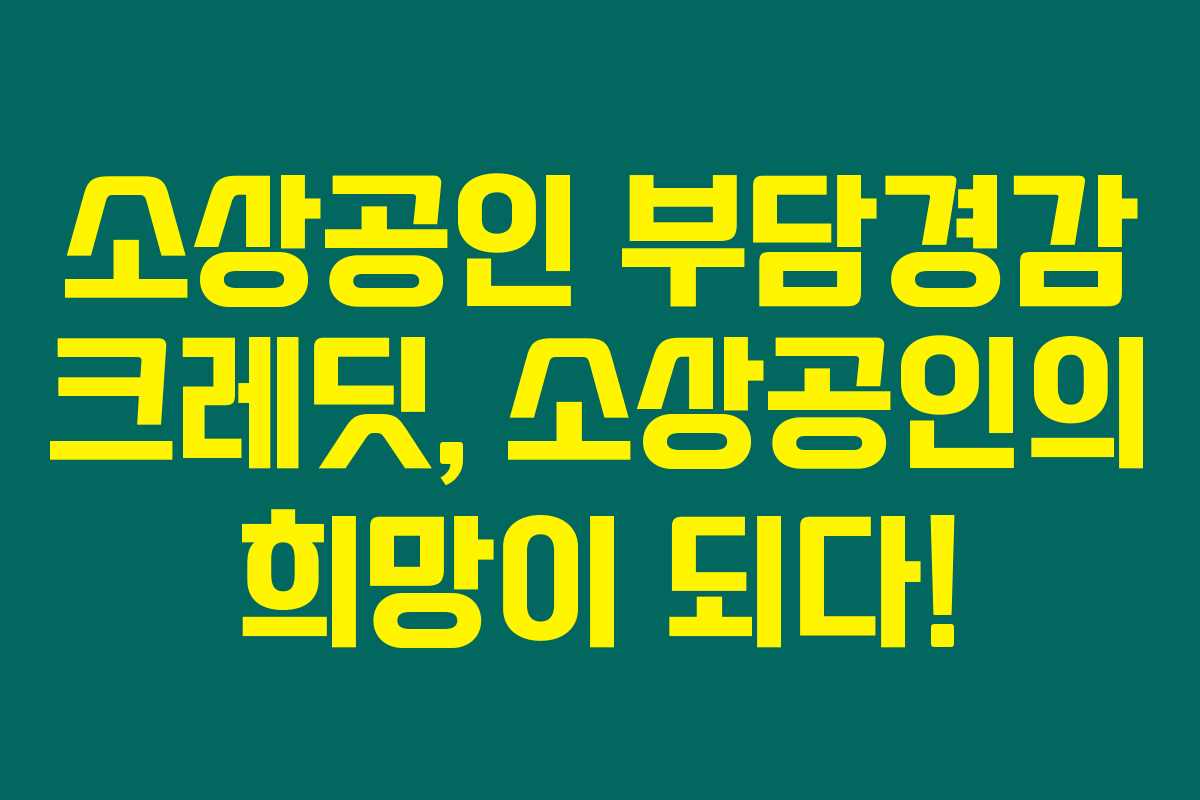 소상공인 부담경감 크레딧 신청은 쉽고, 유용한 지원을 받을 수 있는 기회입니다. 경영 부담으로 힘든 소상공인분들은 지금 바로 공식 시스템에 접속해 신청해 보시길 바랍니다!