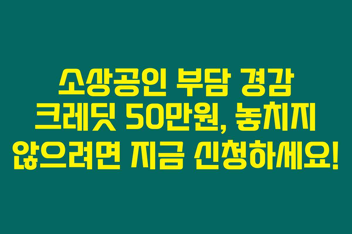 소상공인 부담 경감 크레딧 지원사업은 신청 절차가 간편하며, 매달 나가는 공과금과 보험료를 50만원이나 절약할 수 있는 기회랍니다. 자격이 된다면 꼭 신청하세요! 이 정보가 주변의 사장님들에게도 도움이 되길 바라요.