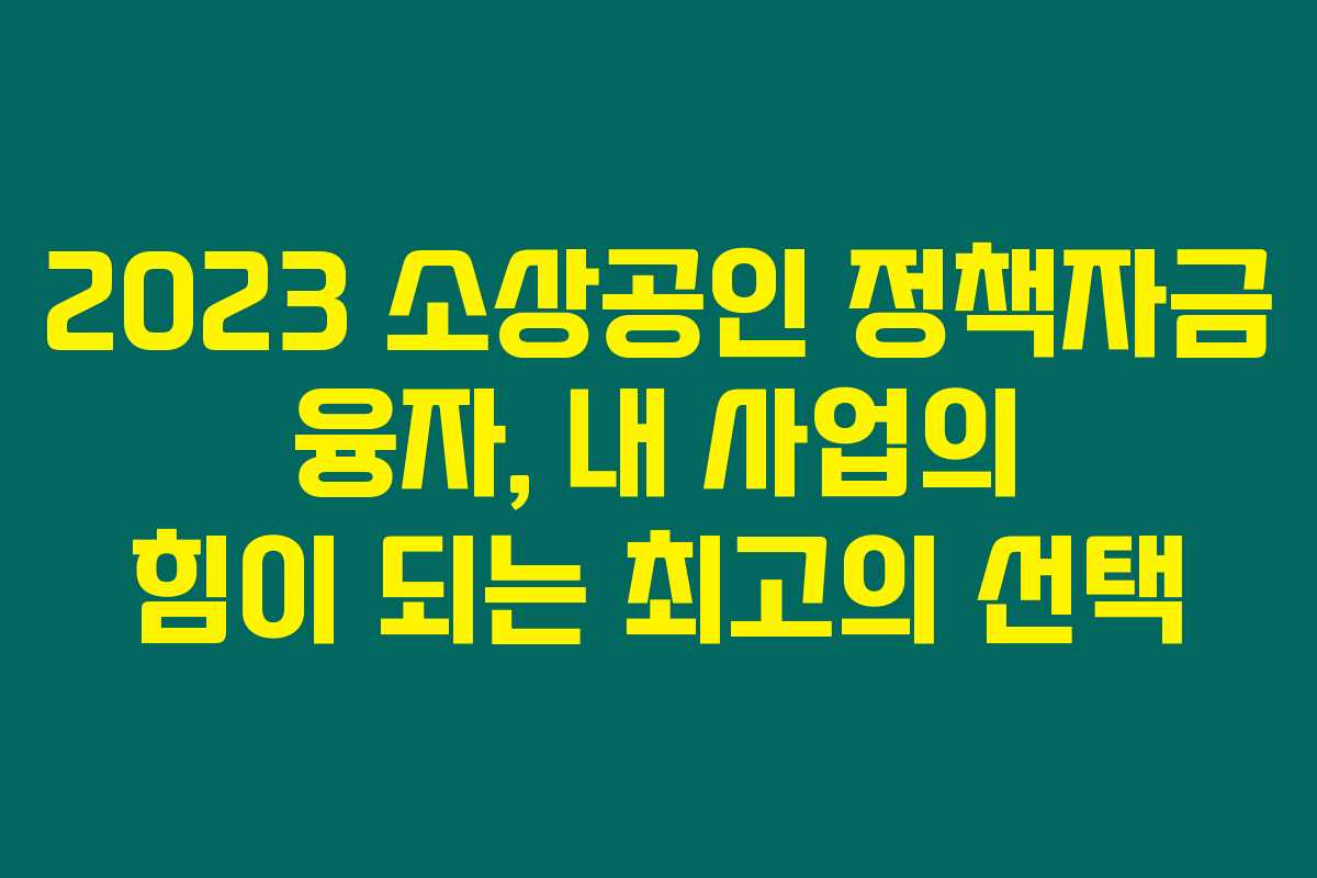 2023년 소상공인들이 새로운 도전을 시작할 수 있도록 든든한 지원을 받아보세요. 정책자금 융자는 창업과 사업 운영에 실제적인 도움이 됩니다. 아래를 읽어보시면, 각종 자금 지원 내용과 신청 방법을 한눈에 이해할 수 있는 정보를 제공합니다.