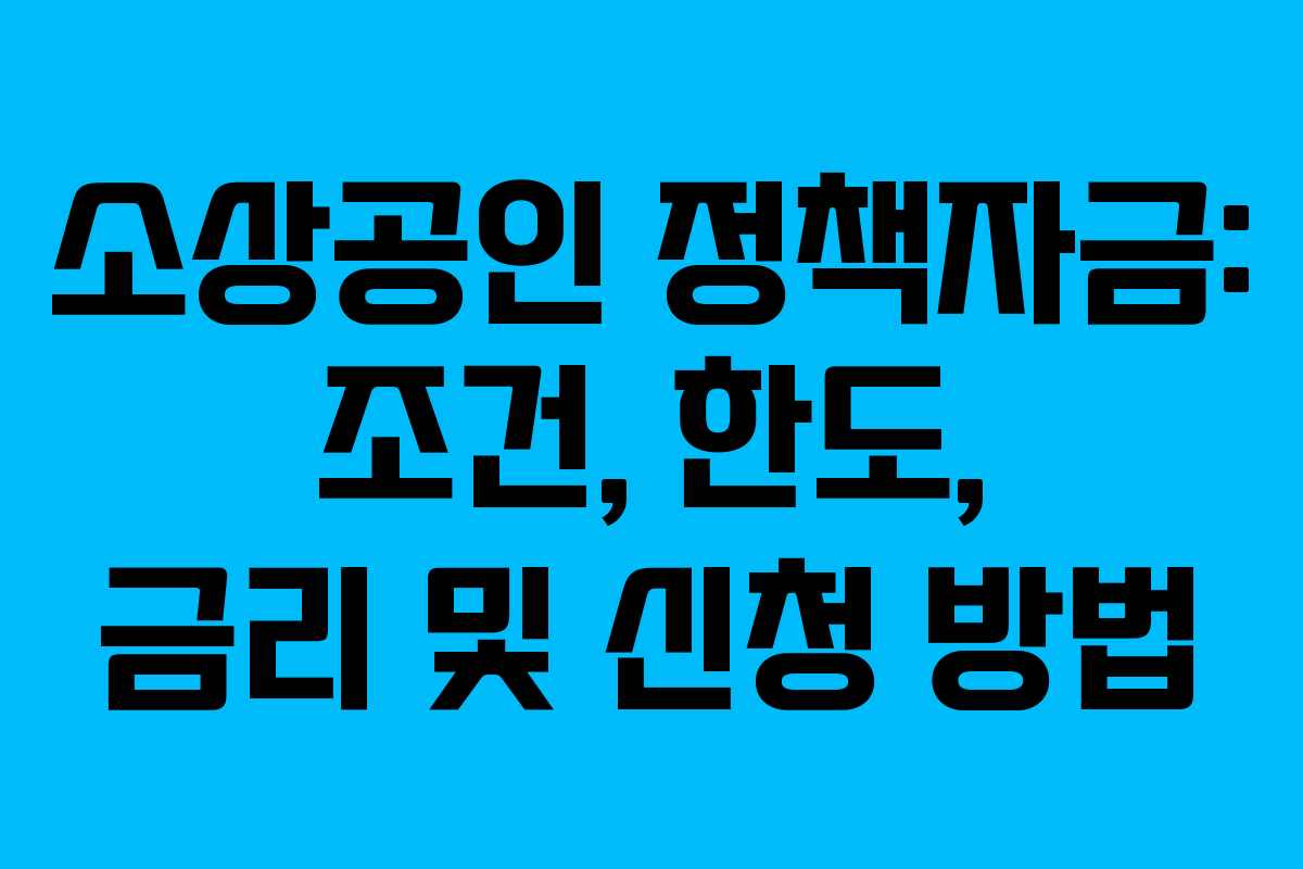 소상공인 정책자금은 소상공인의 경영 안정과 성장을 돕기 위한 금융 지원 프로그램입니다. 2023년 5월부터 소상공인시장진흥공단에서는 직접 대출과 대리 대출을 통해 최대 1억원까지 자금 지원을 받을 수 있습니다. 본 글에서는 정책자금의 조건, 한도, 금리, 신청 방법에 대해 자세히 알아보겠습니다.