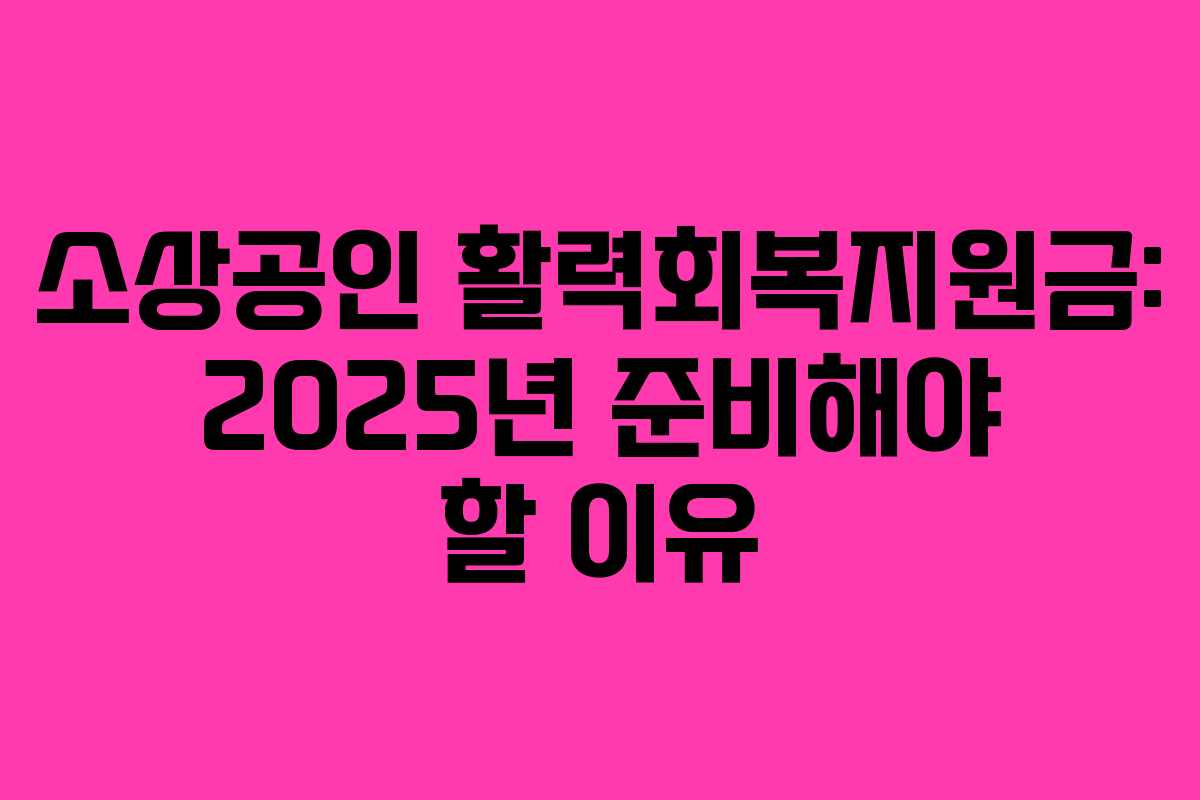 소상공인 활력회복지원금: 2025년 준비해야 할 이유