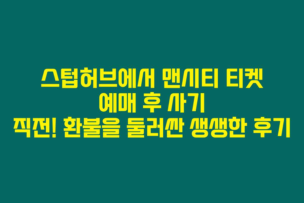 맨체스터시티의 경기를 직관하려는 분이라면 필히 이 내용을 읽어보세요. 스텁허브에서의 티켓 예매 과정과 예상치 못한 문제를 통해 사기를 직면할 뻔한 생생한 경험을 공유합니다. 어떻게 위기를 극복했는지 함께 알아보세요.