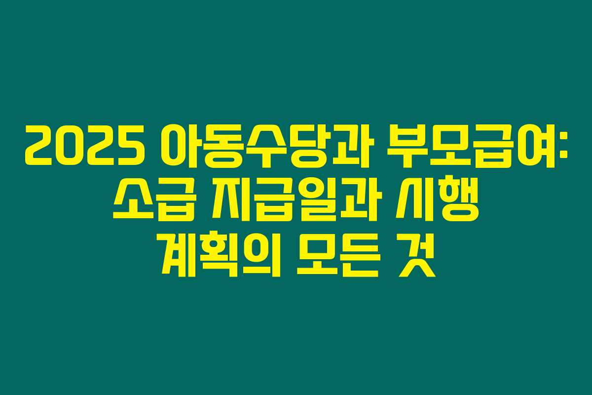 제가 직접 리서치한 바로는 2025년부터 시행될 아동수당과 부모급여 정책은 많은 부모들 사이에서 큰 기대를 모으고 있습니다. 이러한 정책은 부모에게 경제적 지원을 제공하여 아동의 건강한 성장과 발달을 도모하는 데 중점을 두고 있습니다. 아래를 읽어보시면, 아동수당의 소급 지급일과 부모급여의 시행 계획에 대한 자세한 내용을 확인할 수 있습니다.