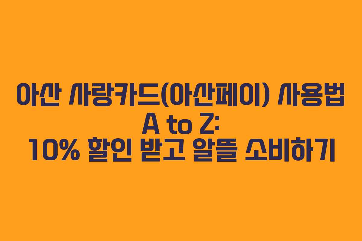 아산 사랑카드(아산페이) 사용법 A to Z: 10% 할인 받고 알뜰 소비하기