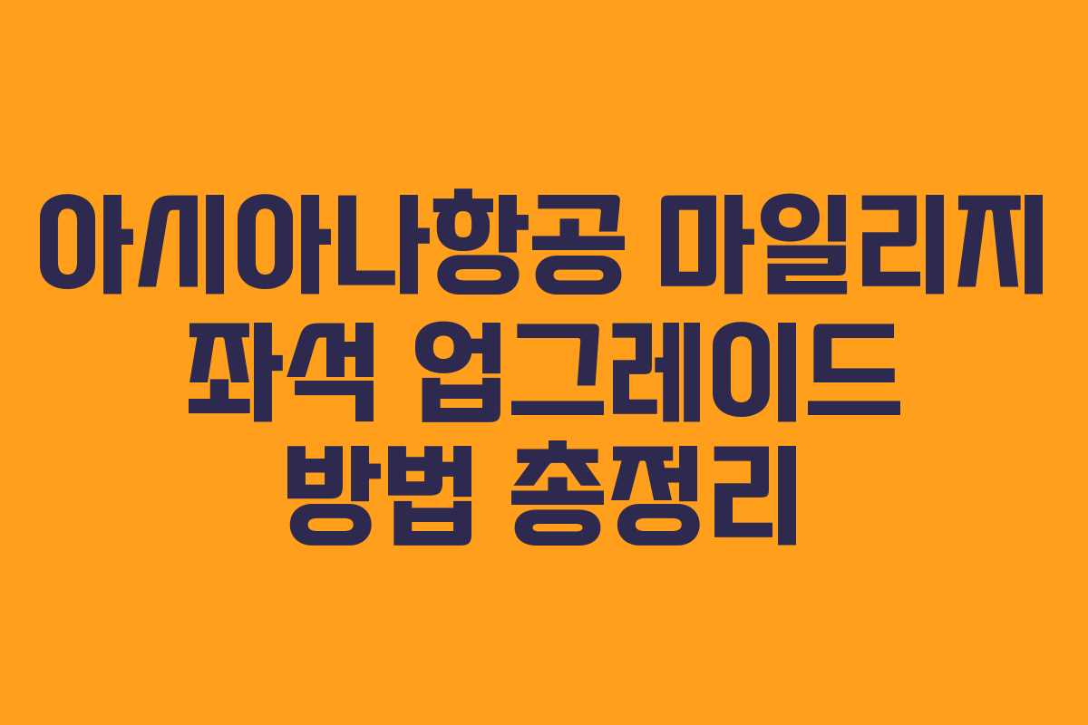 - 아시아나 마일리지 좌석 업그레이드 이해하기