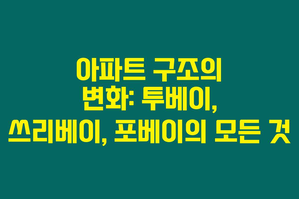제가 직접 알아본 바로는, 최근 아파트 시장에서 투베이(2bay), 쓰리베이(3bay), 포베이(4bay) 구조에 대한 관심이 매우 높아지고 있습니다. 이러한 아파트 구조는 각각의 특징을 가지고 있으며, 선택할 때 고려해야 할 다양한 요소가 있습니다. 아래를 읽어보시면 이들 구조가 무엇을 의미하는지, 각 구조의 장단점 및 민생회복지원금 25만원 지급 신청 방법까지 알아볼 수 있습니다.