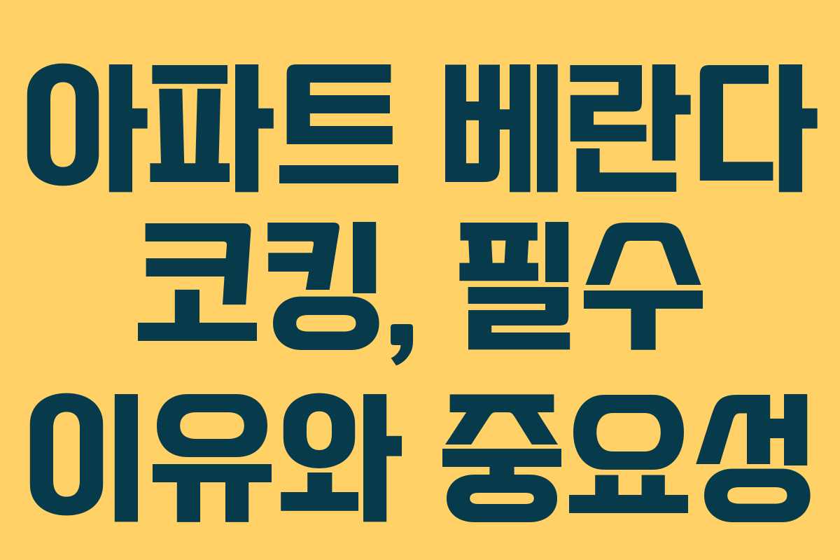 아파트 베란다 코킹은 누수 방지, 에너지 절약, 구조물 보호, 부동산 가치 유지 등 여러 면에서 중요한 역할을 합니다. 정기적인 점검과 필요 시 교체를 통해 오랫동안 안전하고 쾌적한 주거 환경을 유지할 수 있습니다.