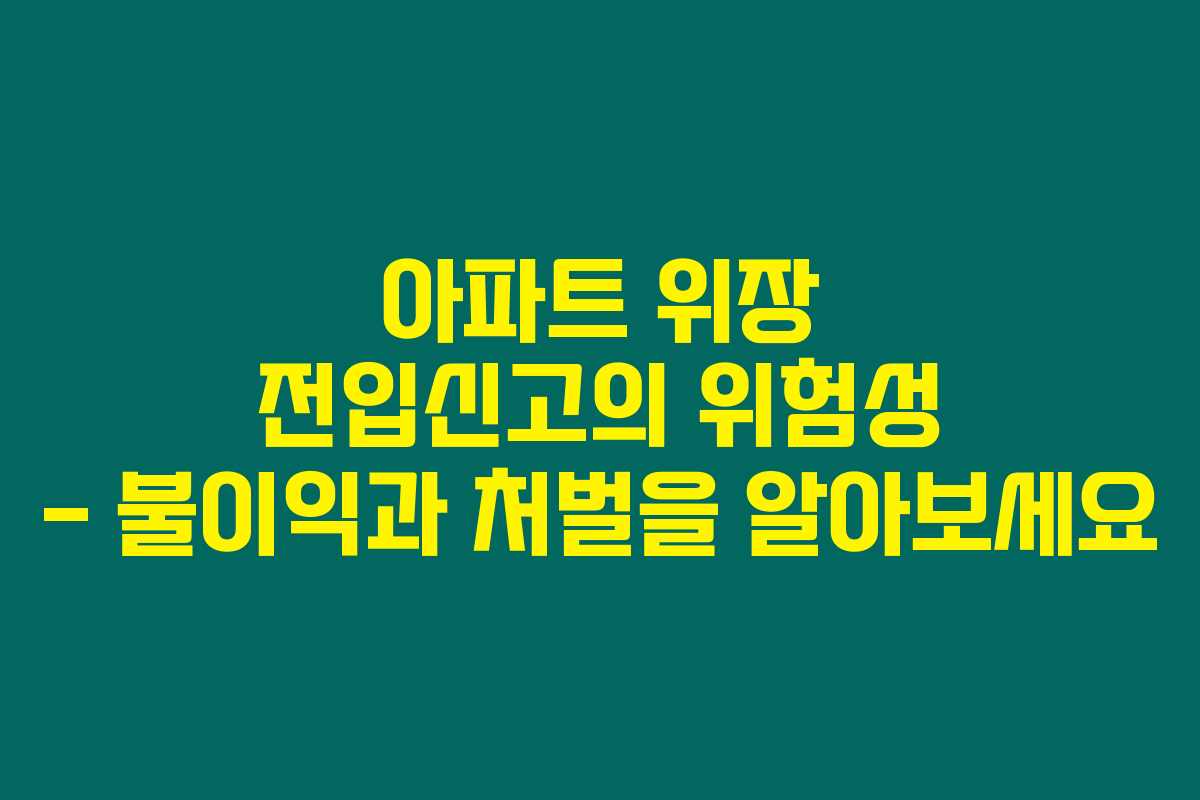 아파트 위장 전입신고를 시도하고 있다면 주목해 주세요. 위장 전입신고는 법적으로 불법입니다. 이를 알지 못하고 진행했다가 중대한 불이익에 처할 수 있으니, 아래를 읽어보시면 위장 전입신고의 위험성과 불이익, 처벌에 대해 명확히 이해할 수 있을 것입니다.