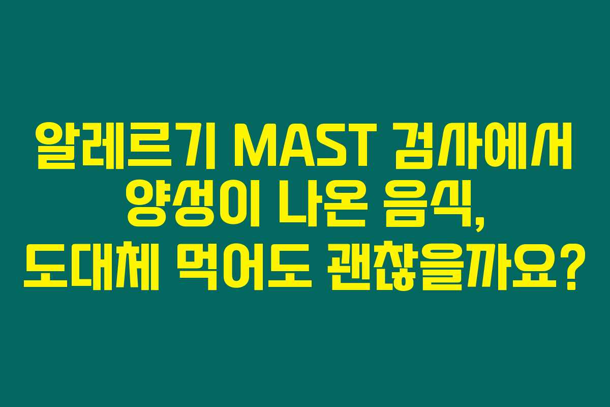 음식을 선택할 때 MAST 검사 결과를 고려하는 분들이 많지요. MAST 검사에서 양성이 나왔다면 과연 해당 음식을 먹어도 괜찮을까요? 어떤 분들은 걱정해서 아예 그 음식을 피하는 경우도 많아요. 하지만 그게 정답일까요? 아래를 읽어보시면, MAST 검사 결과에 대해 더 깊이 알아보는 데 도움이 될 거예요.