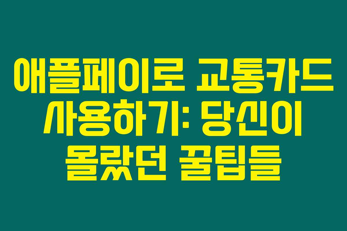 애플페이로 교통카드 사용하기: 당신이 몰랐던 꿀팁들