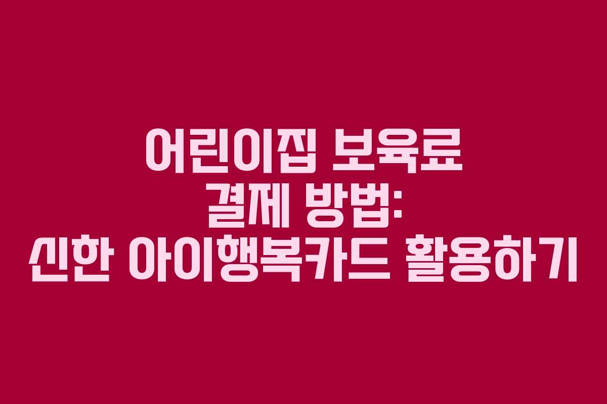 어린이집에 아이를 보내기 시작하면서 보육료 결제는 부모에게 중요한 부분입니다. 특히 첫 결제를 경험하면서 느낀 점과 정보를 공유하고자 합니다. 이번 포스팅에서는 신한 아이행복카드를 통한 어린이집 보육료 결제 방법을 간단히 소개하겠습니다.