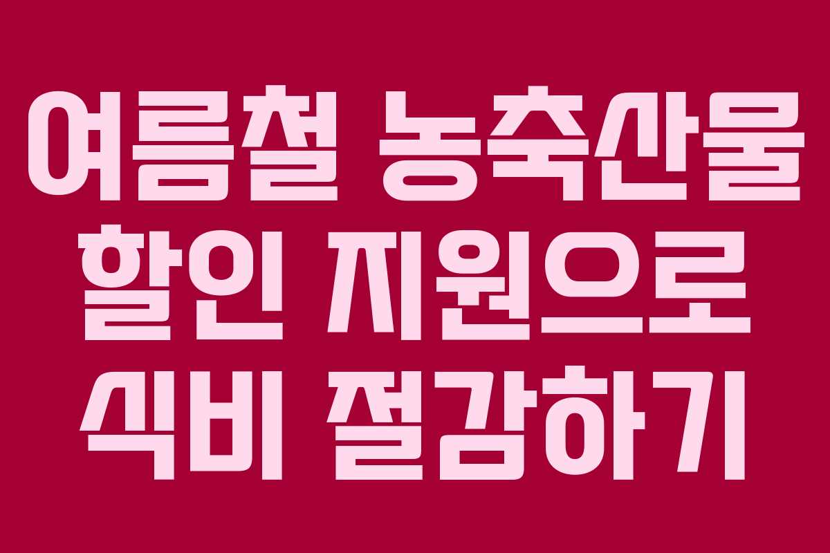 여름 휴가철을 맞아 정부가 농축산물 할인 지원 행사를 진행합니다. 이번 행사는 국산 농축산물을 최대 40% 저렴하게 구매할 수 있는 기회를 제공합니다. 식비 부담을 줄이고 신선한 농산물을 구매할 수 있는 좋은 기회입니다.