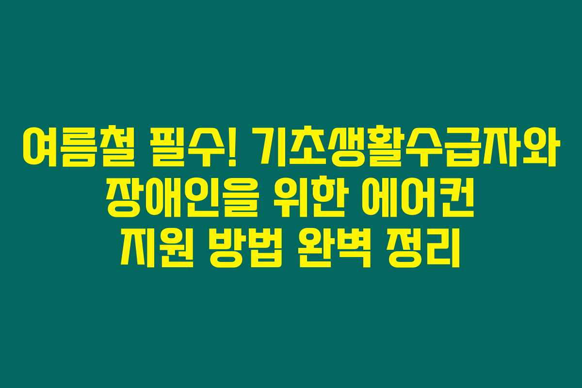 여름철 필수! 기초생활수급자와 장애인을 위한 에어컨 지원 방법 완벽 정리