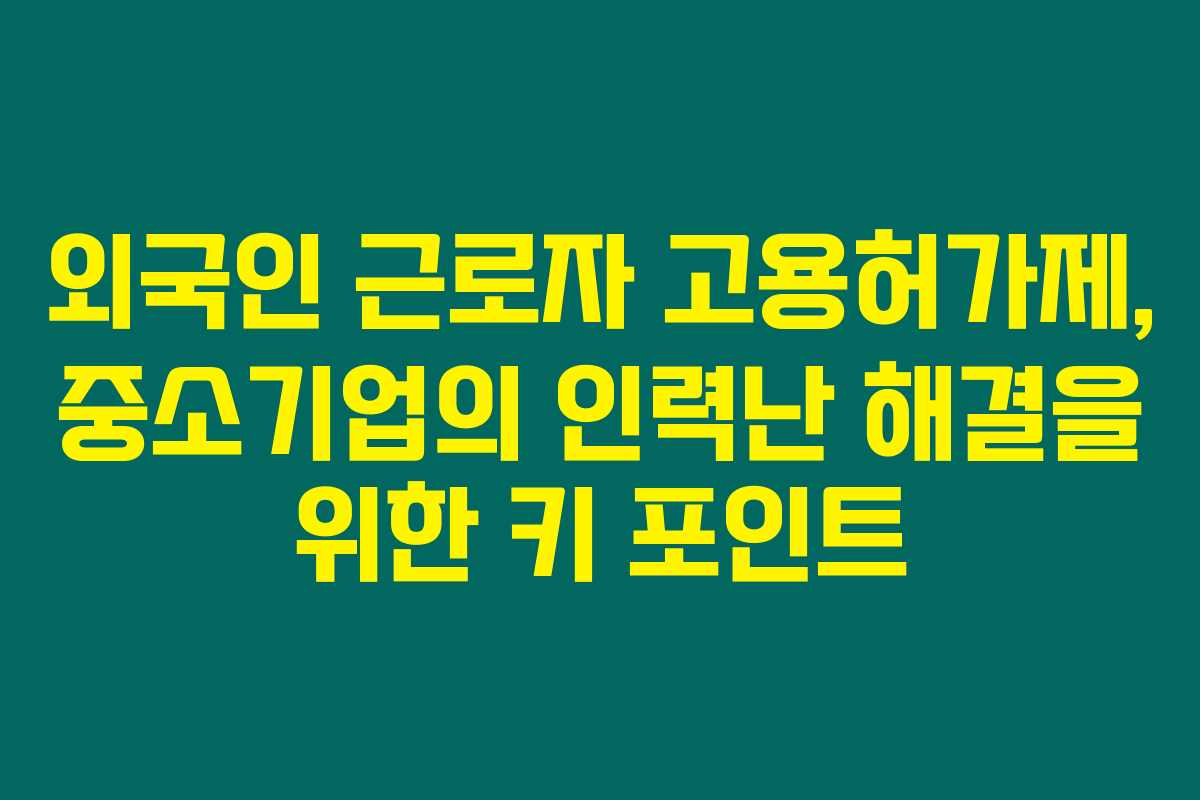 **외국인 고용허가제**는 중소기업의 인력난을 해결하기 위한 유용한 제도예요. 다양한 업종에서 외국인 근로자를 고용할 수 있는 기회를 통해, 기업의 생산성을 높여 안정적 경영을 이어갈 수 있죠. 신청 요건과 절차를 잘 확인하고, 적시에 외국인 근로자를 채용해 경영 효율성을 높여보세요!