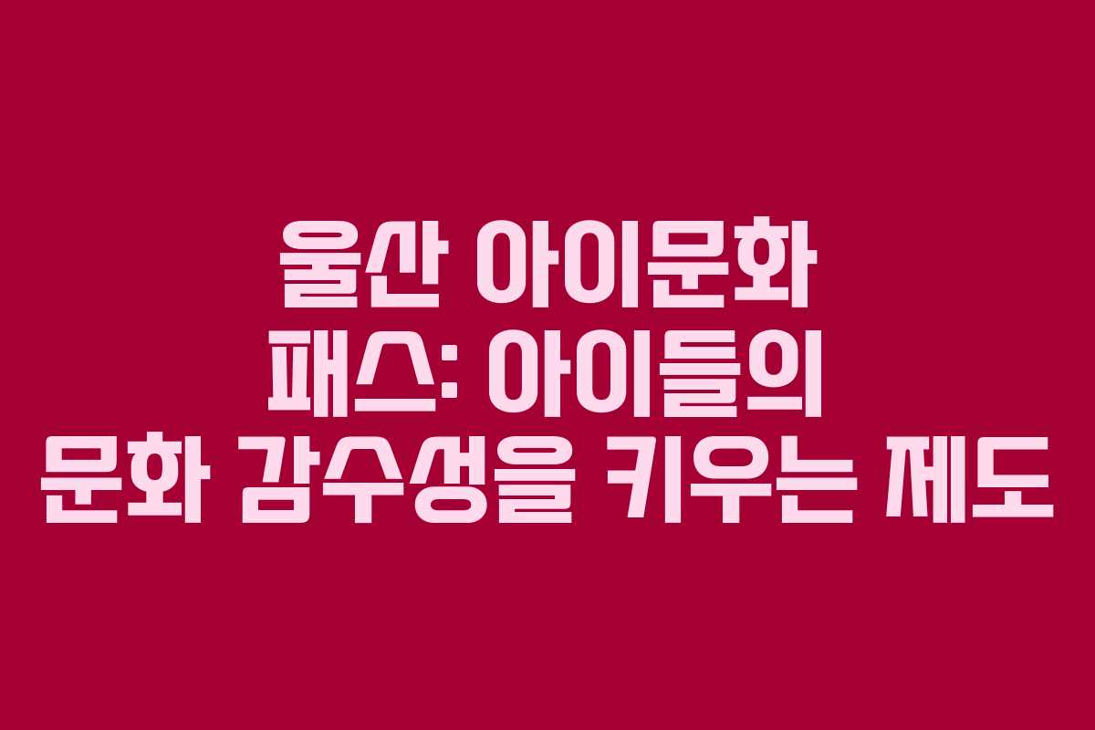 아이문화 패스는 울산광역시가 2024년부터 시행하는 정책으로, 만 3세 이상부터 만 13세 이하의 어린이(초등학생 포함)를 대상으로 한 문화 바우처 제도입니다. 이 제도의 주요 목적은 아이들이 문화 향유의 기회를 확대하고, 가족 단위의 문화 활동을 활성화하며, 지역 문화예술단체의 관람객 확보를 촉진하는 것입니다.