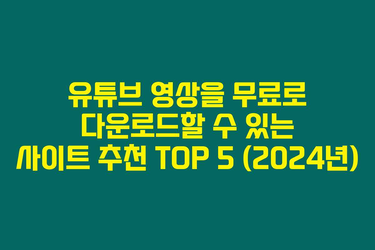 유튜브 영상을 무료로 다운로드할 수 있는 사이트 추천 TOP 5 (2024년)