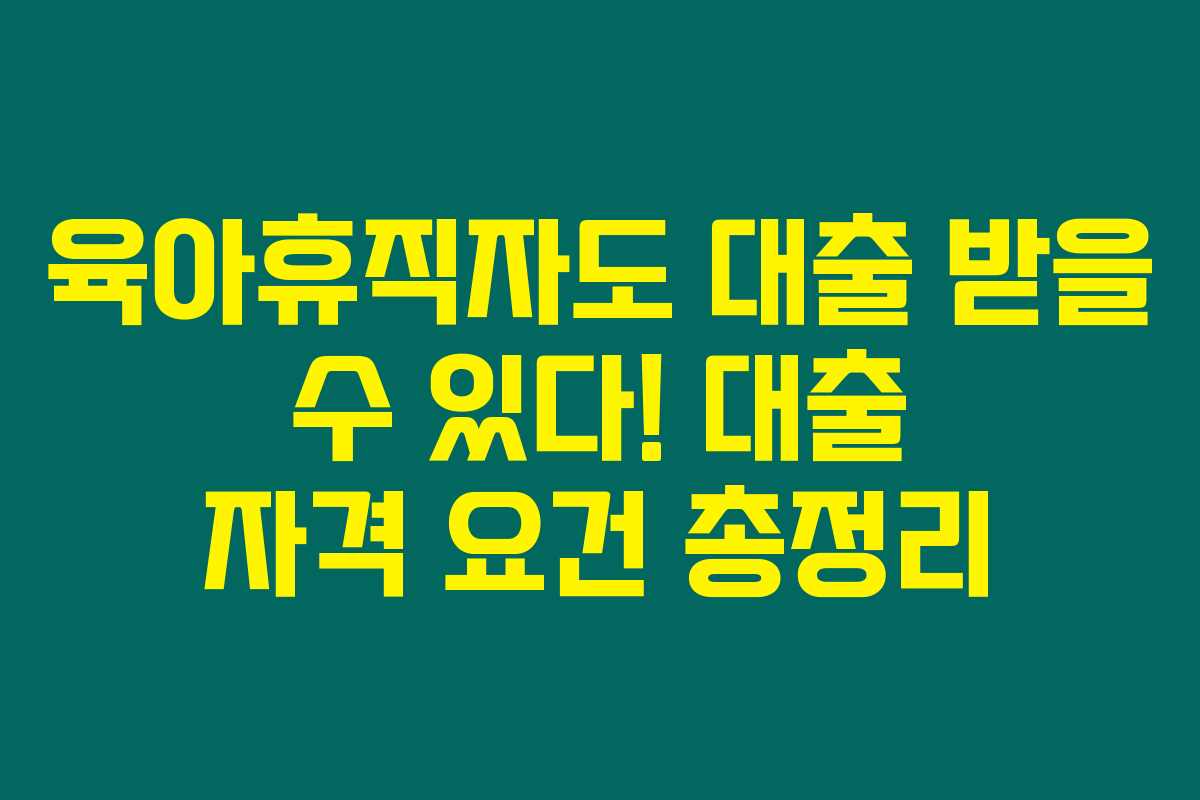 육아휴직자도 대출 받을 수 있다! 대출 자격 요건 총정리