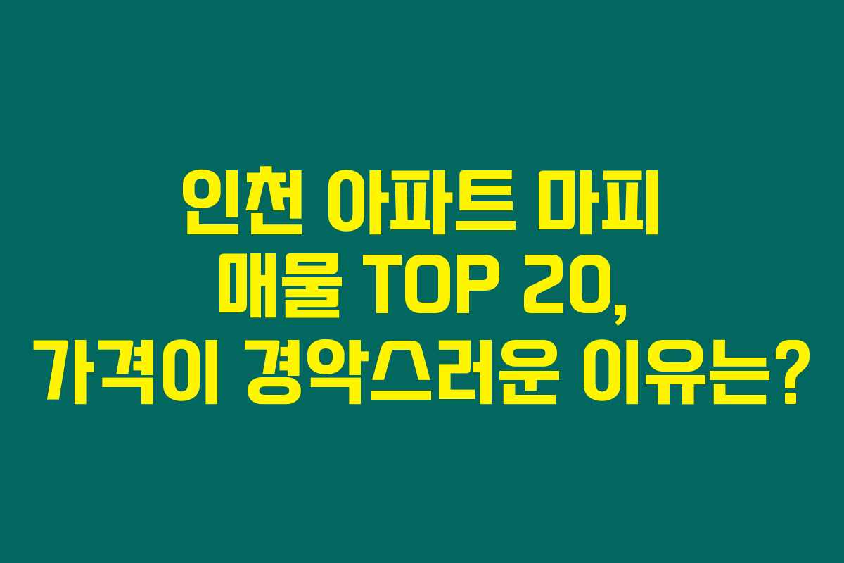 여기서 인천에서 마피 매물로 알려진 아파트 TOP 20을 소개할게요. 이 리스트를 통해 저렴하게 아파트를 구입할 수 있는 기회를 놓치지 마세요.