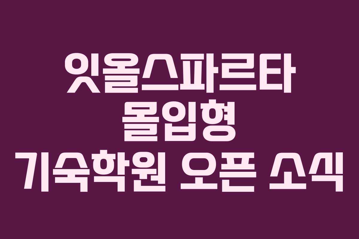 잇올스파르타가 새로운 몰입형 기숙학원을 오픈했습니다. 이 학원은 학생들이 집중하여 학습할 수 있도록 다양한 프로그램과 시설을 갖춘 곳으로, 많은 관심을 받고 있습니다.