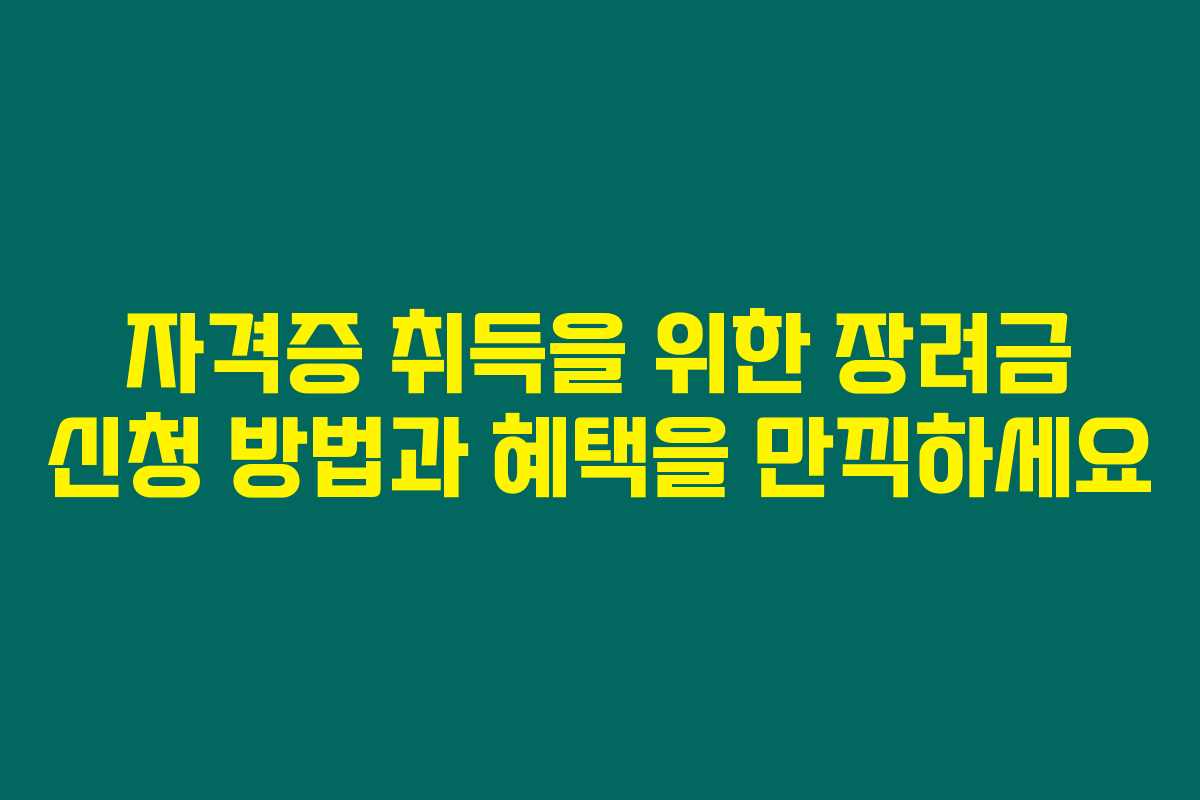 자격증 취득 장려금 신청은 관련 웹사이트에서 온라인 진행이 가능하며, 필요한 서류를 준비하여 제출하면 되어요.