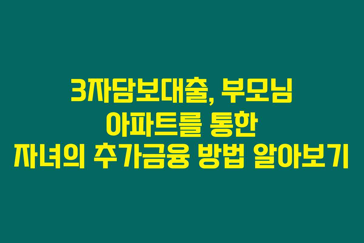 제가 알아본 바로는 3자담보대출은 부모님의 명의로 된 아파트를 담보로 자녀가 자금을 추가로 대출받을 수 있는 제도입니다. 이 대출 방식은 다양한 상황에서 자녀에게 필요한 금융 자원을 제공하며, 특히 부모님이 보유한 자산을 활용하는 점이 큰 장점이에요. 아래를 읽어보시면 3자담보대출의 정의, 조건, 장단점 그리고 유의사항에 대해 더욱 자세히 알 수 있습니다.