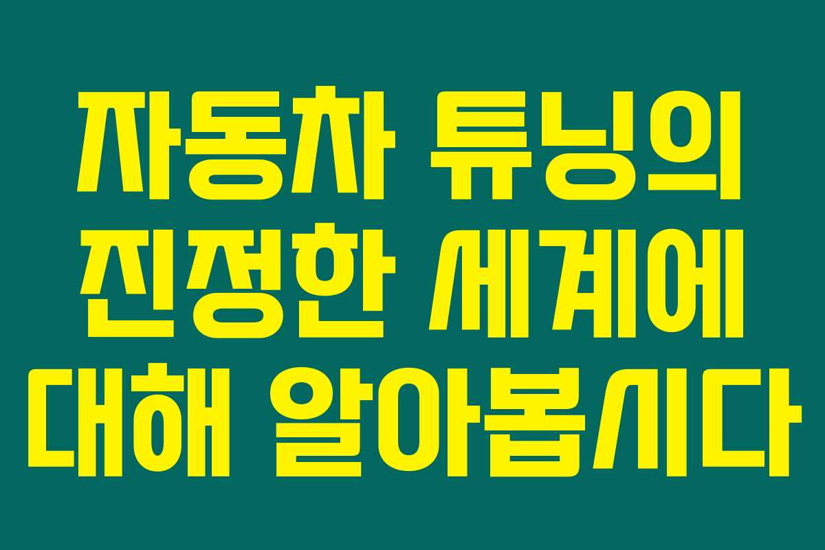 자동차 튜닝은 단순히 번호를 포장하는 것이 아니라, 경제적이고 안전하게 차량 성능을 최적화하는 과정이에요. 제대로 튜닝하면 나만의 독창적인 자동차를 만들 수 있어요. 나만의 차를 만들어가면서 차량에 대해 더 깊이 이해할 수 있는 매력적인 여정이 기다리고 있으니 도전해 보세요!