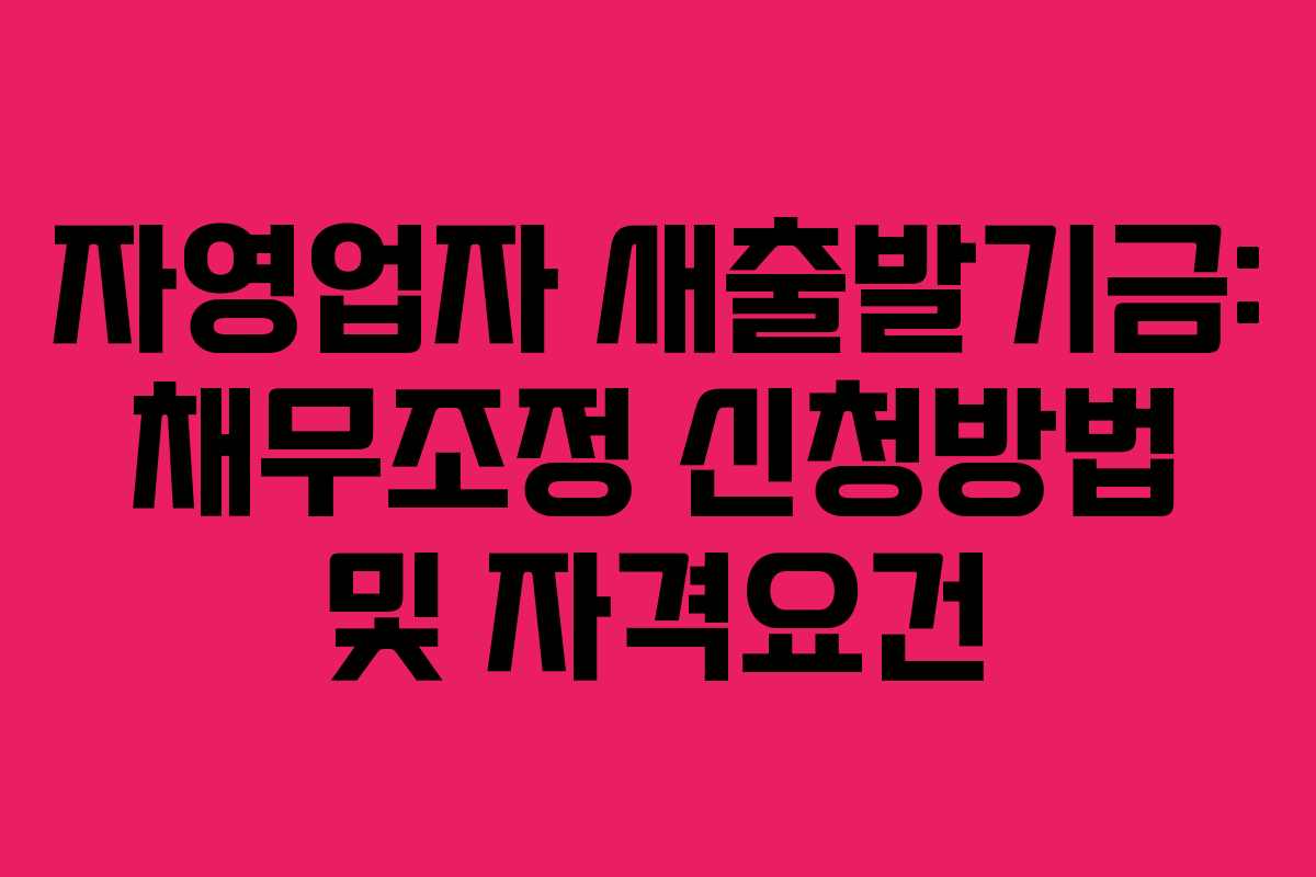 최근 경제 상황이 어려워지면서 많은 자영업자와 소상공인들이 힘든 시기를 겪고 있습니다. 이를 지원하기 위해 정부는 자영업자를 위한 새출발기금을 마련하였습니다. 이 기금을 통해 채무를 조정하면 재정적인 숨통이 트일 수 있습니다. 본 포스팅에서는 새출발기금의 자격요건과 신청 방법에 대해 자세히 알아보겠습니다.