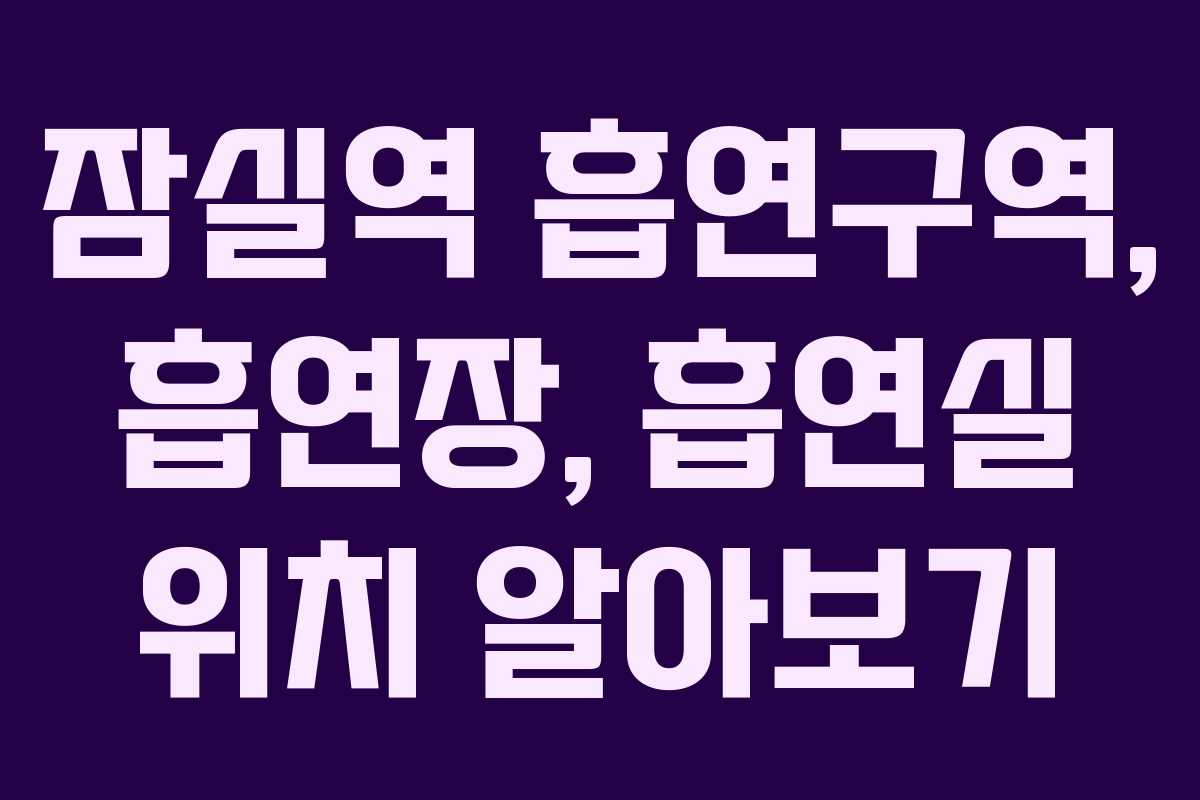 잠실역은 많은 사람들이 이용하는 대중교통의 중심지로, 흡연자들에게는 흡연구역을 찾는 것이 중요합니다. 이 글에서는 잠실역 주변의 흡연구역 위치와 이용 규칙, 주변 편의시설에 대해 자세히 안내하겠습니다.