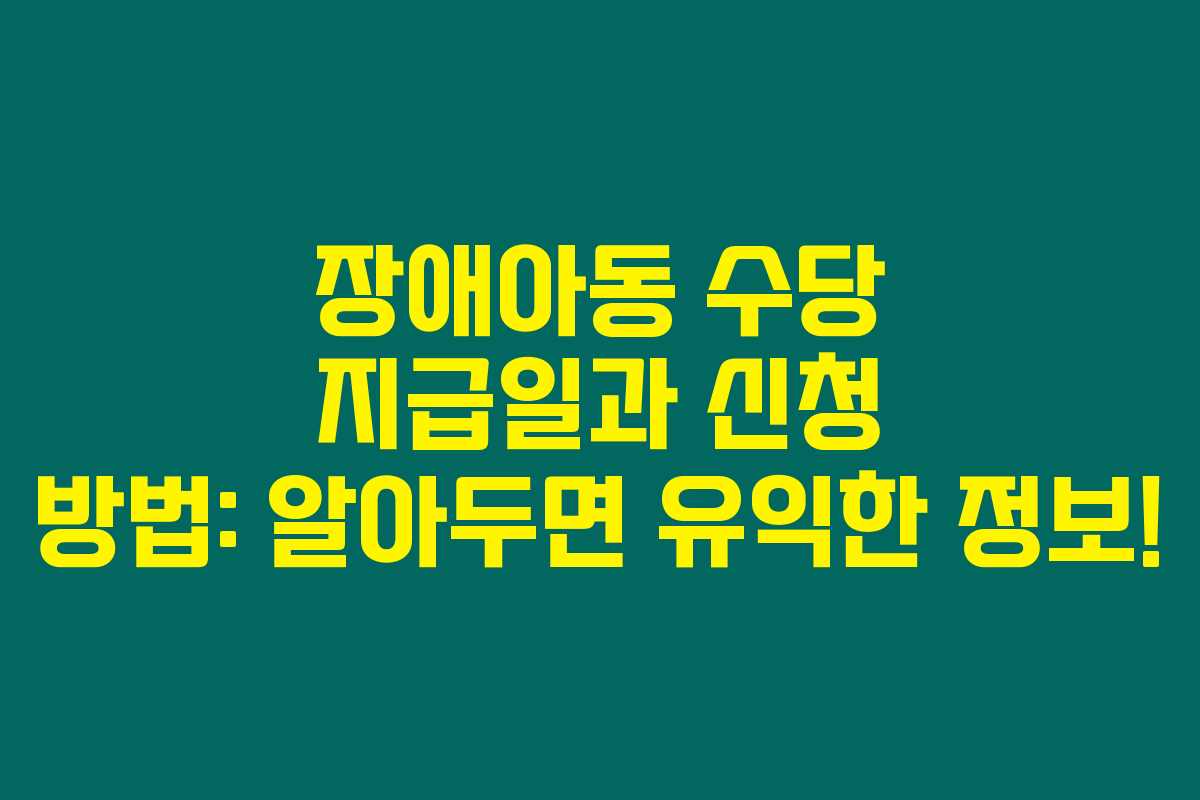 장애아동 수당 지급일과 신청 방법: 알아두면 유익한 정보!
