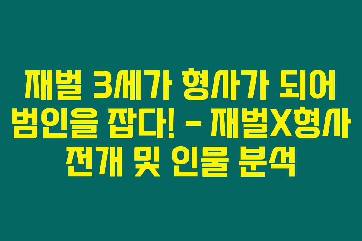재벌 3세가 형사가 되어 범인을 잡다! – 재벌X형사 전개 및 인물 분석