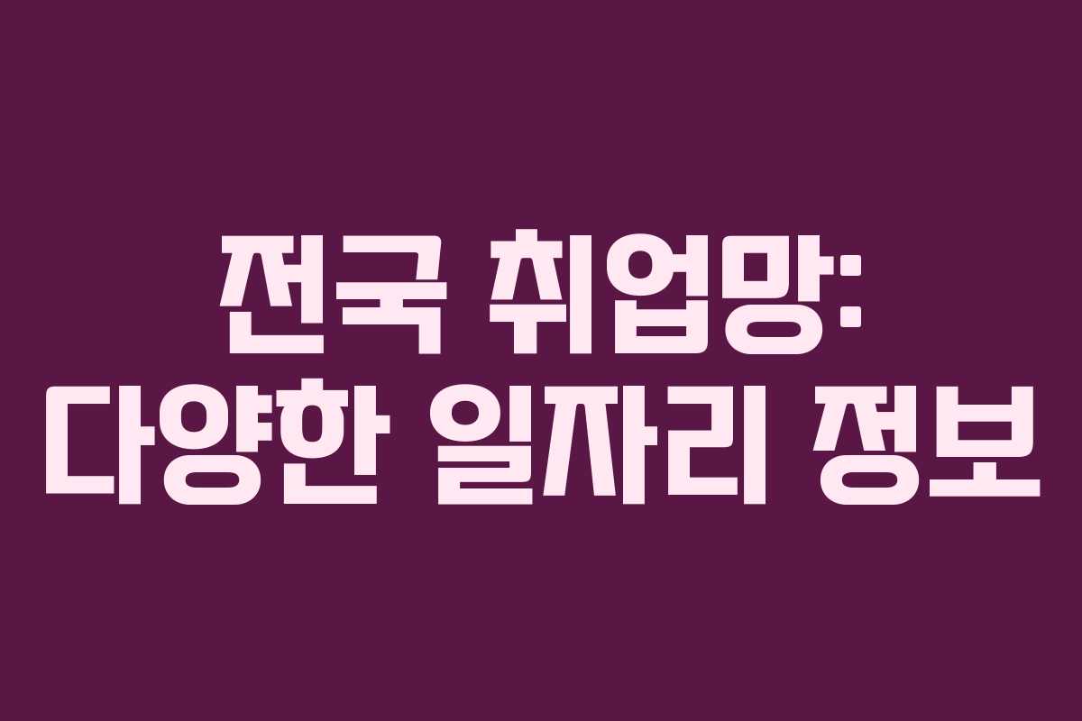 전국 취업망을 통해 여러분의 꿈과 경력에 맞는 일자리를 찾아보세요. 각 지역의 특성과 요구하는 조건을 체크하여 신중한 지원 바랍니다.