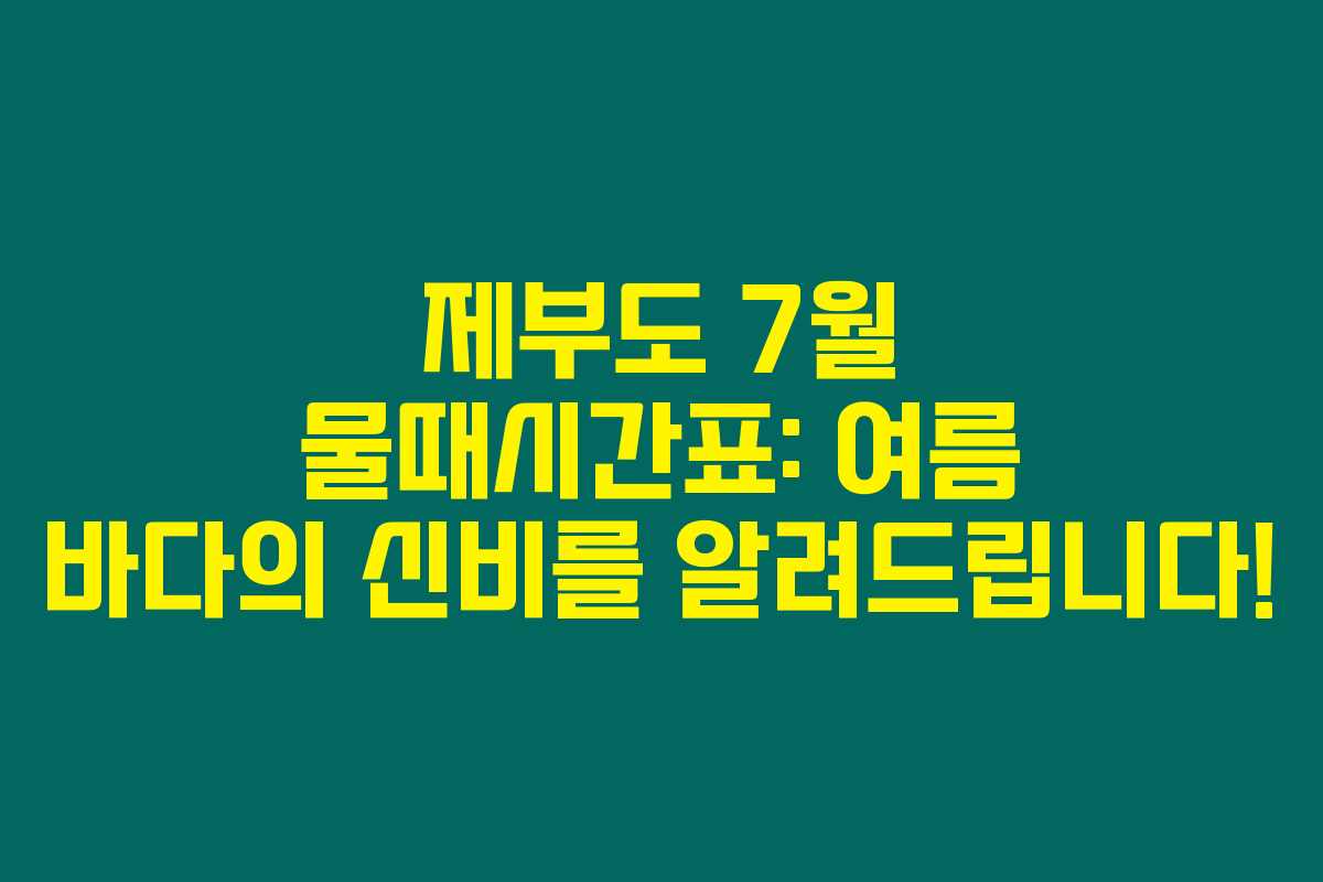 이번 제부도 7월 물때시간표가 여러분의 여름 여행에 큰 도움이 되길 바랍니다. 꼭 시간을 체크하고 즐거운 여행 되세요!