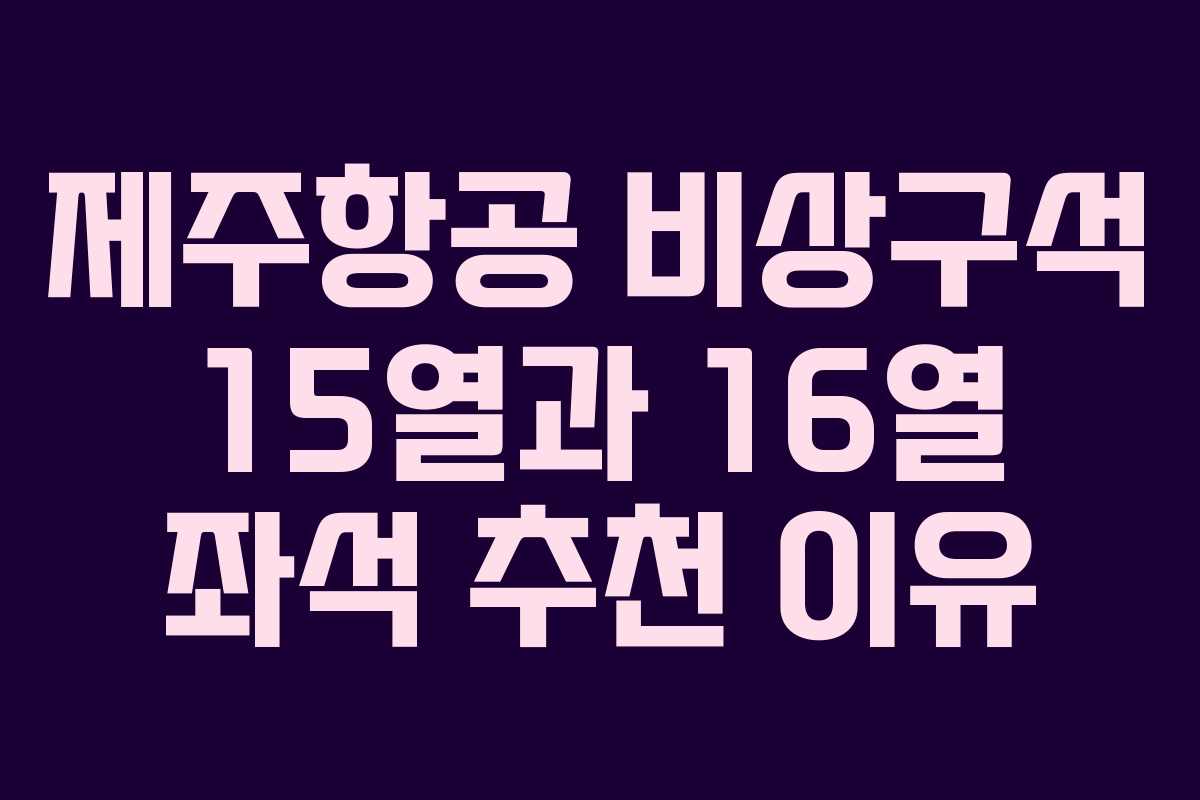 제주항공을 이용할 때 좌석 선택은 여행의 편안함을 결정짓는 중요한 요소입니다. 특히 비상구석 좌석인 15열과 16열은 많은 승객들이 선호하는 자리입니다. 이번 포스트에서는 이 두 좌석의 특징과 추천 이유를 소개하겠습니다.