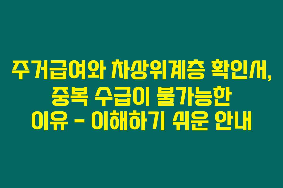 주거급여와 차상위계층 확인서, 중복 수급이 불가능한 이유 – 이해하기 쉬운 안내