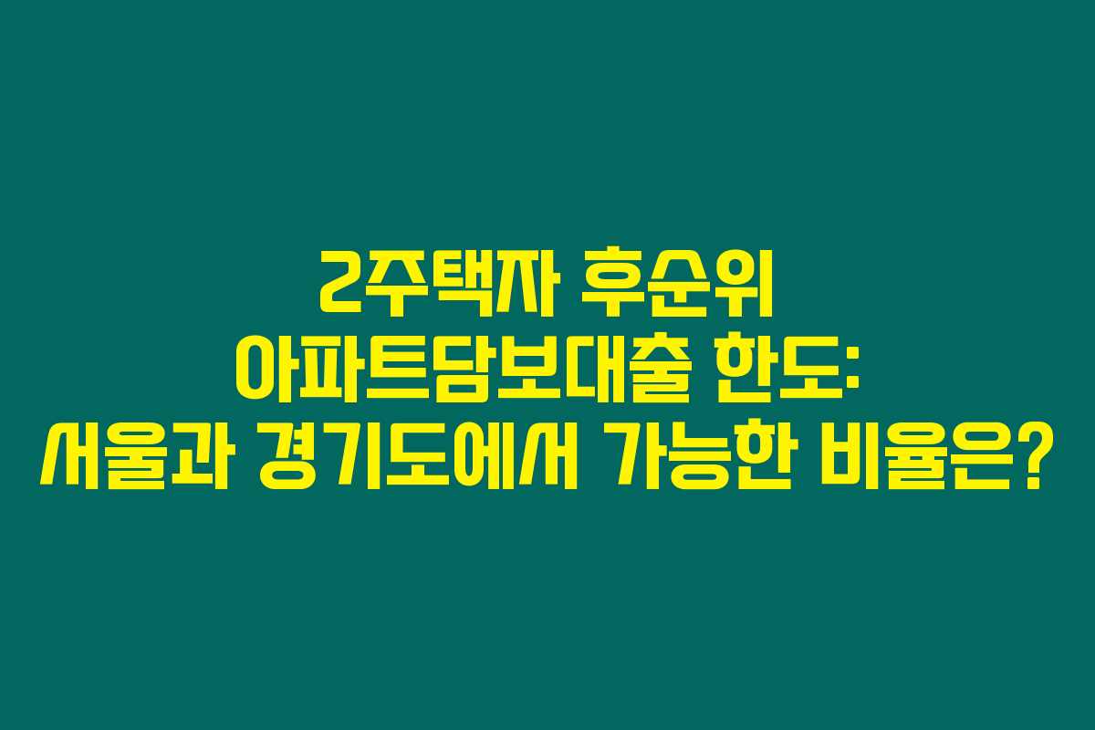 - 서울과 경기도의 후순위 아파트 담보대출 한도