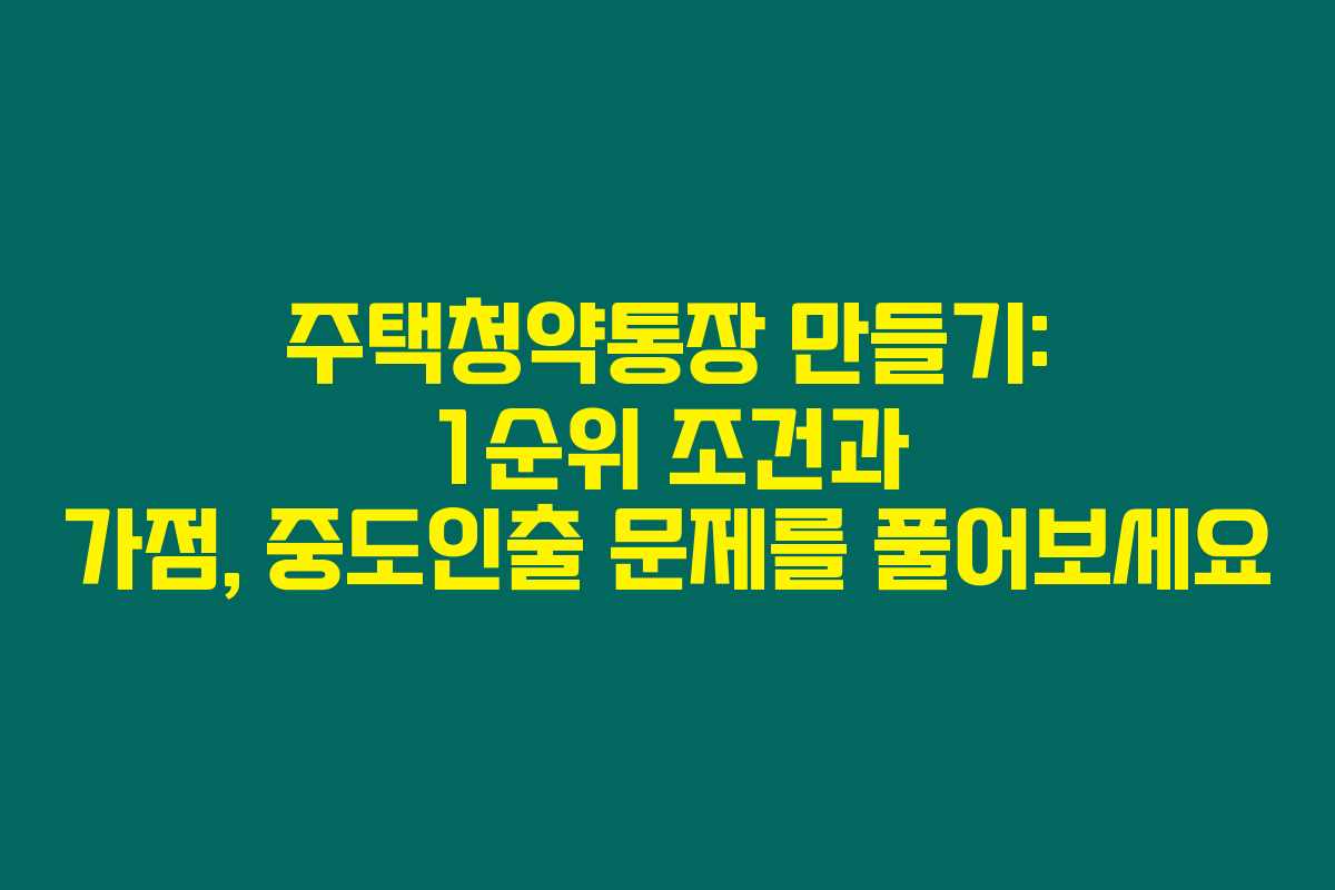 주택청약통장을 만들고 싶다면 1순위 조건, 청약가점 및 중도인출 가능 여부에 대해 반드시 알아야 합니다. 내 집 마련을 위한 첫걸음인 만큼, 이와 관련된 모든 내용을 자세히 정리해드릴게요. 아래를 읽어보시면 이런 궁금증들에 대해 확실한 해답을 찾을 수 있을 거예요.
