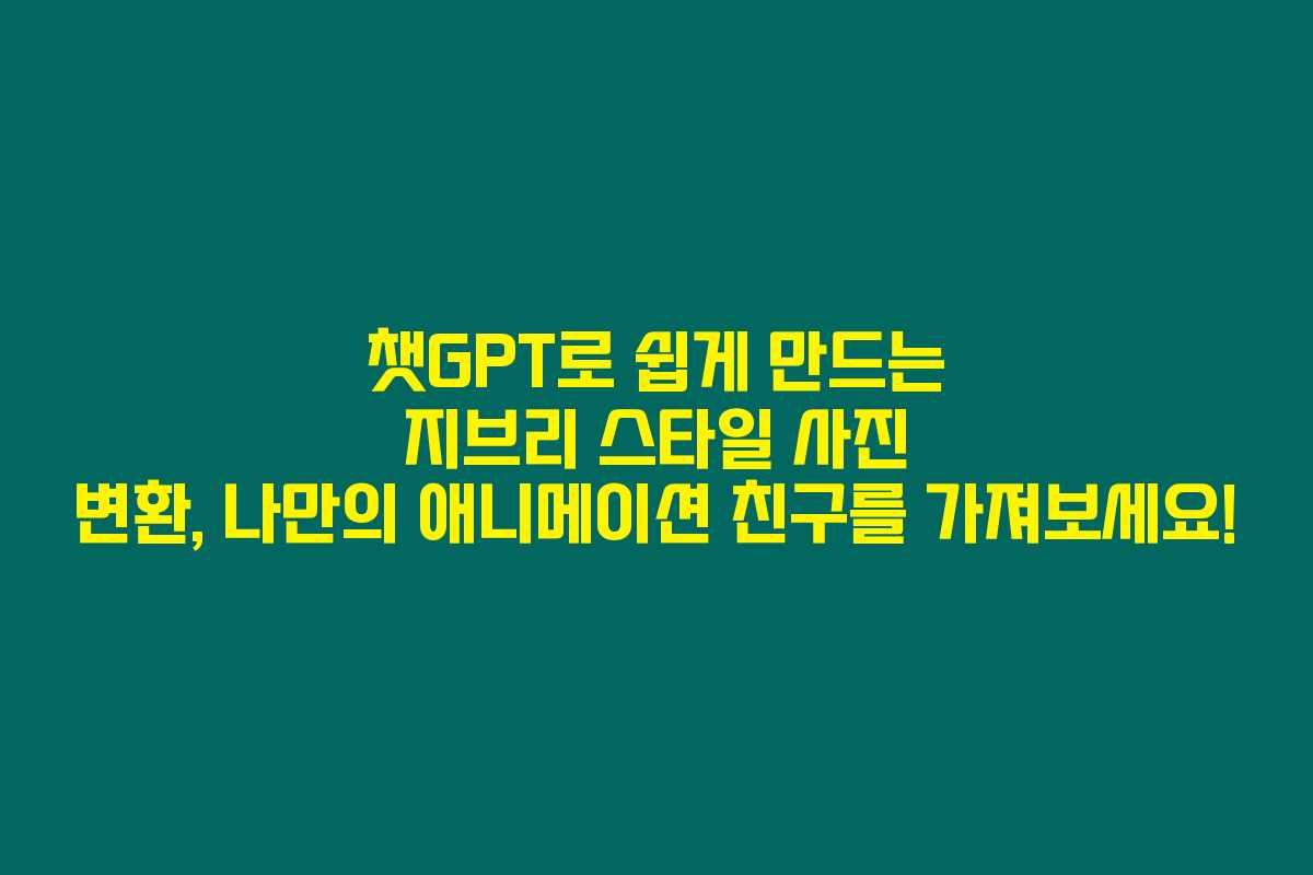 챗GPT로 쉽게 만드는 지브리 스타일 사진 변환, 나만의 애니메이션 친구를 가져보세요!