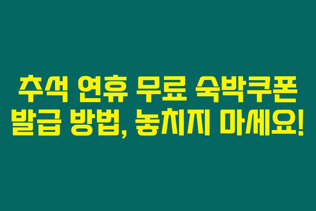 추석 연휴를 맞아 무료로 숙박 쿠폰을 발급받을 수 있는 기회가 있습니다. 많은 사람들이 기다리는 혜택인데요. 여러분은 어떻게 발급받을 수 있는지 궁금하시죠? 아래를 읽어보시면 간단한 방법으로 당신도 무료 숙박 쿠폰을 손에 넣을 수 있는 기회를 확인할 수 있습니다.