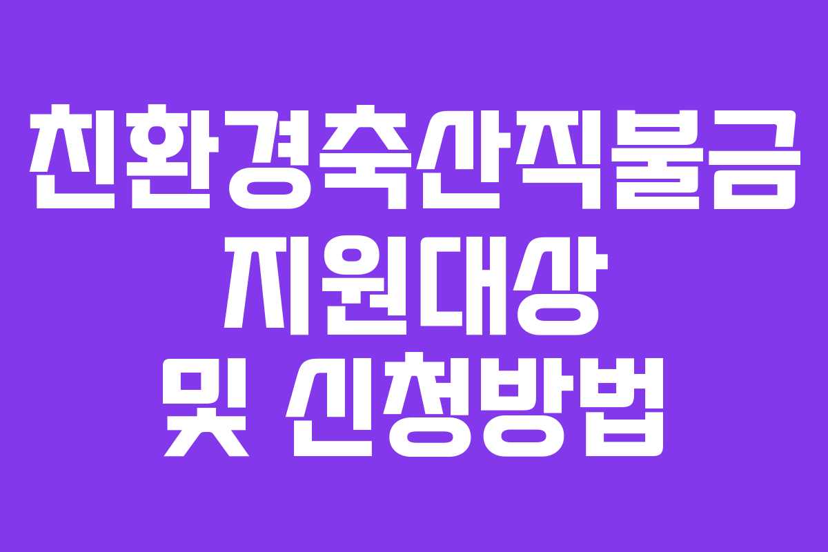 친환경축산직불금은 환경을 고려한 지속 가능한 축산업을 실천하는 농민들에게 지급되는 지원금입니다. 이 제도는 정부에서 환경 보호와 지속 가능한 축산업을 촉진하기 위해 마련하였으며, 2025년부터는 지원이 대폭 강화될 예정입니다. 이 글에서는 친환경축산직불금의 지원대상과 신청방법에 대해 알아보겠습니다.