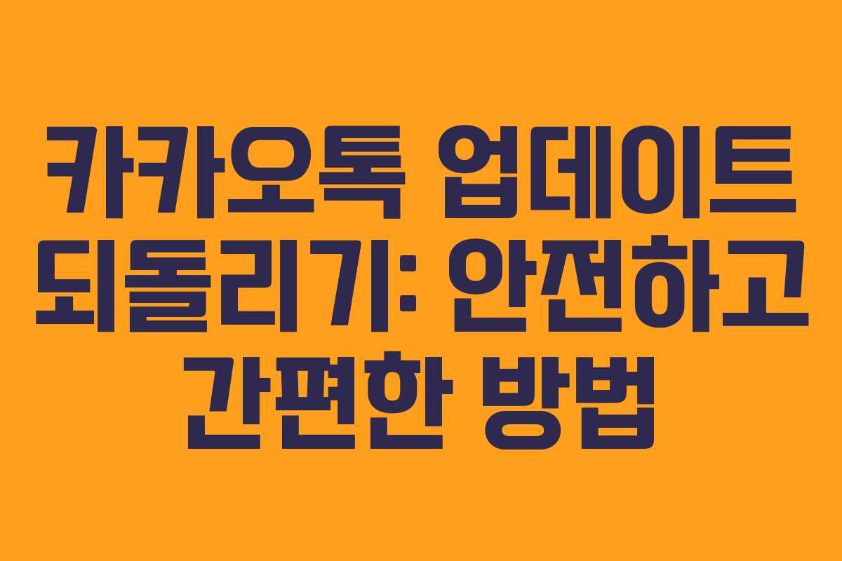 카카오톡 업데이트 되돌리기: 안전하고 간편한 방법